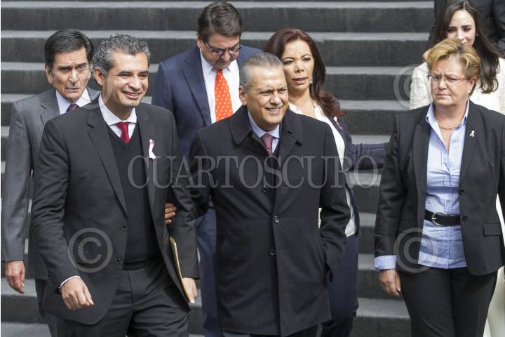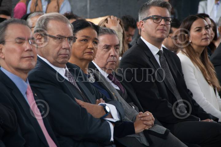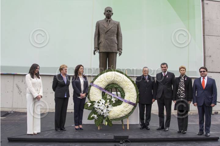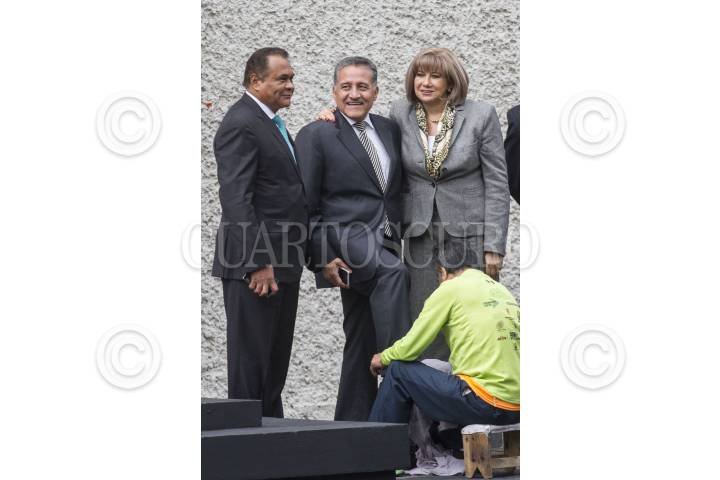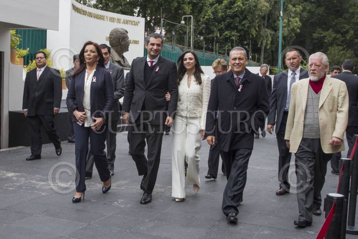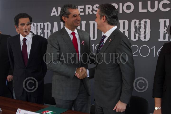 MÉXICO, D.F., 19OCTUBRE2015.- Carolina Monroy del Mazo, secretaria general del PRI, Enrique Ochoa Reza, titular de la CFE, su esposa Greta Rojas y Manlio Fabio Beltrones, presidente nacional tricolor encabezaron el acto por el 70 aniversario luctuoso del general Plutarco Elías Calles, en la sede nacional del PRI. FOTO: ISAAC ESQUIVEL /CUARTOSCURO.COM