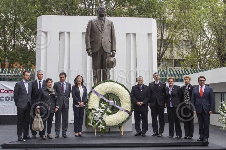 MÉXICO, D.F., 19OCTUBRE2015.- Carolina Monroy del Mazo, secretaria general del PRI, Manlio Fabio Beltrones, presidente nacional tricolor, y Enrique Ochoa Reza, titular de la CFE montaron una guardia de honor en el monumento a Lázaro Cárdenas del Río, en el 70 aniversario luctuoso del general Plutarco Elías Calles, en la sede nacional del PRI. FOTO: ISAAC ESQUIVEL /CUARTOSCURO.COM