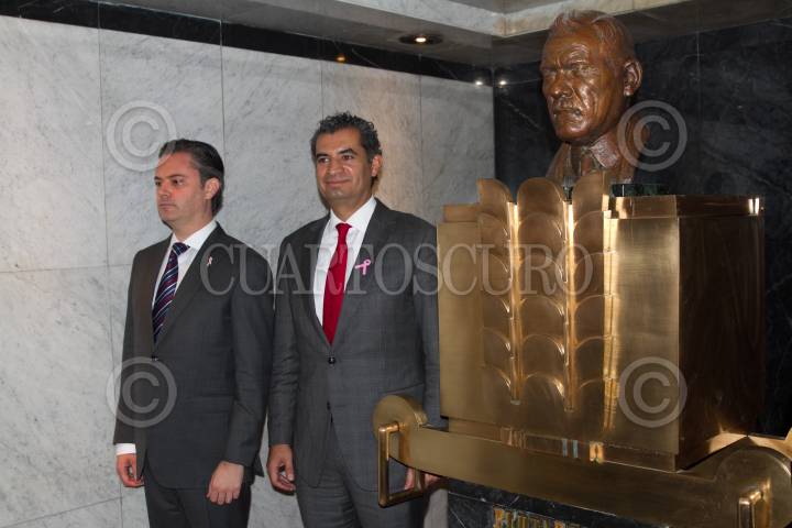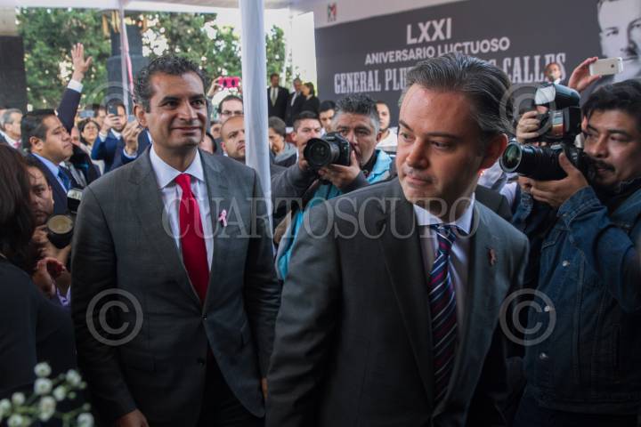 CIUDAD DE MÉXICO, 19OCTUBRE2016.- Enrique Ochoa Reza, líder del PRI, y Aurelio Nuño Jiménez, secretario de Educación Pública (PRI), encabezaron el 71 aniversario luctuoso del ex presidente Plutarco Elías Calles, también fundador del PRI, en el Monumento a la Revolución. FOTO: MOISÉS PABLO /CUARTOSCURO.COM