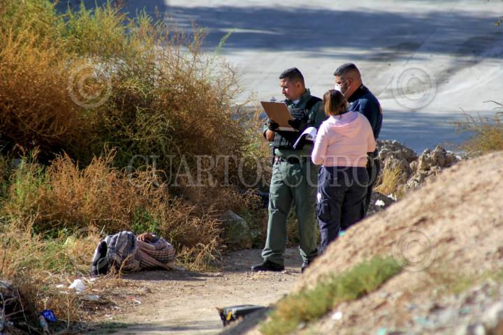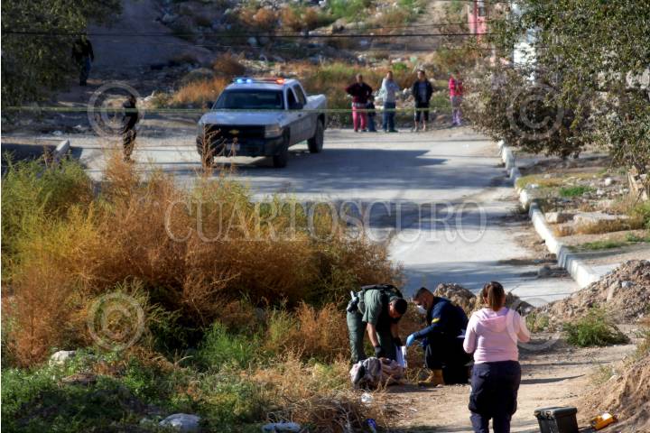 CIUDAD JUÁREZ, CHIHUAHUA, 13NOVIEMBRE2017.- Una persona sin vida y encobijada, fue localizada en la colonia Plutarco Elías Calles. El hallazgo fue realizado en las calles  Azcapotzalco e Islas Carolinas, cuando una persona  reportó el hecho al servicio de emergencia 911. El cadáver se encontraba entre matorrales, en una calle de terracería, además de estar cubierto con una cobija y cinta adhesiva. FOTO: NACHO RUIZ /CUARTOSCURO.COM