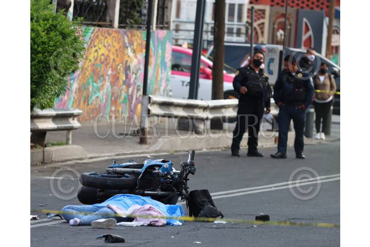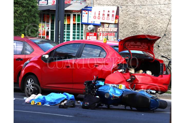 Una mujer que viajaba como copiloto en una motocicleta falleció después se impactara contra un automóvil mal estacionado en Andrés Molina Enriques casi esquina con Plutarco Elías Calles de la colonia San Pedro Iztacalco.