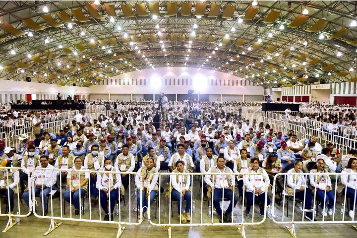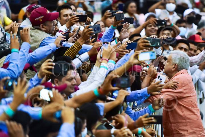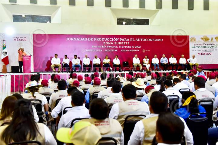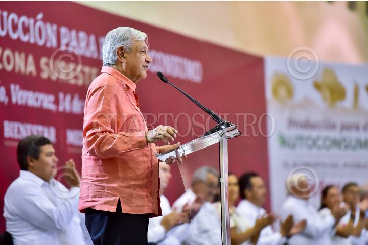 Andrés Manuel López Obrador durante el anuncio de las Jornadas de producción para el autoconsumo en Boca del Río, Veracruz.