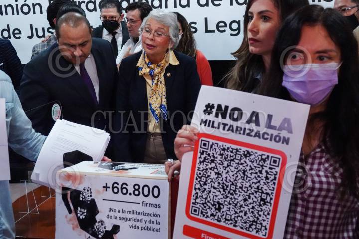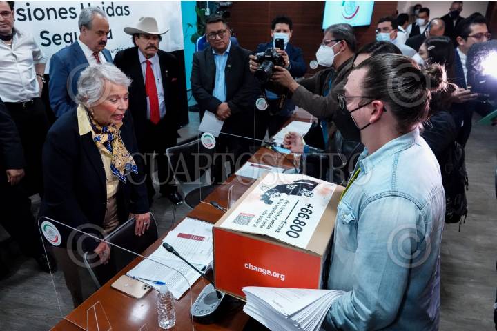 Integrantes de la organización Change.org hacen entrega de las firmas recabada a Olga Sáncez Cordero previo a la instalación de la Comisión de Justicia del Senado de la República.