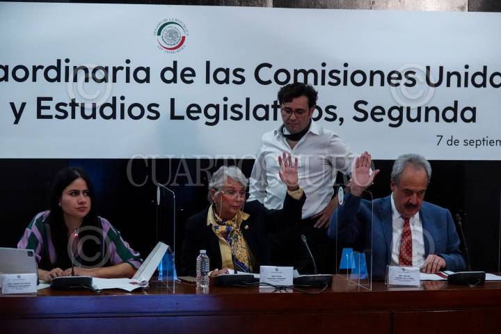 La presidenta Olga sánchez Cordero, y Rafael Espino, presidente de la comisión de Estudios Legislativos Segunda, durante la discusión en la Comisión de Justicia del Senado de la República