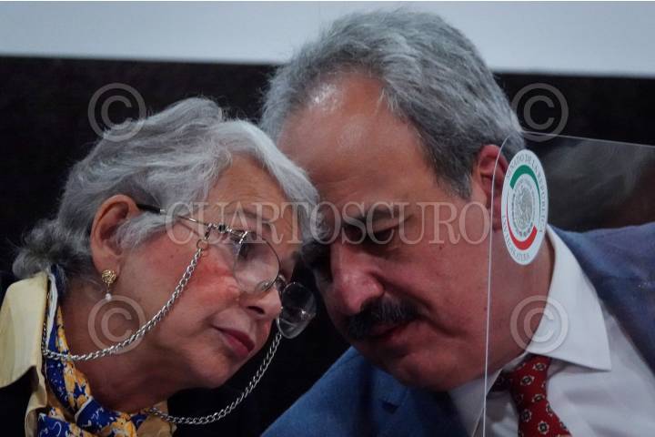 La presidenta Olga sánchez Cordero durante la discusión en la Comisión de Justicia del Senado de la República