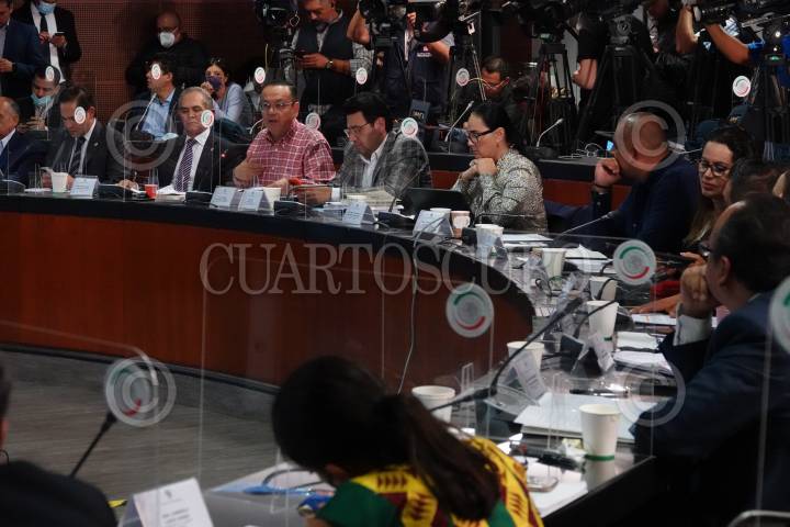 Indira de Jesús Rosales, secretaria de la Comisión de Justicia, la presidenta Olga sánchez Cordero, y Rafael Espino, presidente de la comisión de Estudios Legislativos Segunda, durante la discusión en la Comisión de Justicia del Senado de la Repúbl