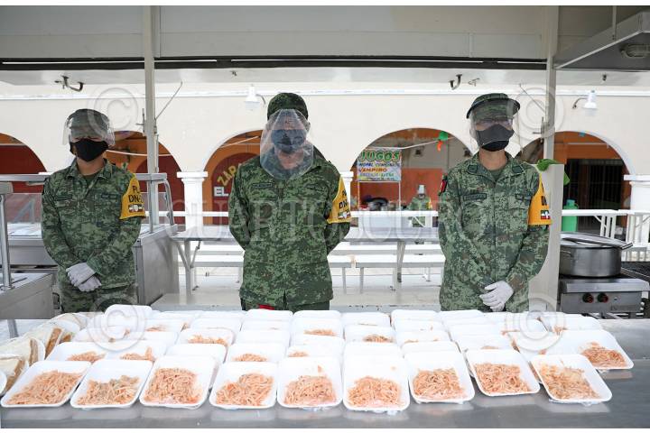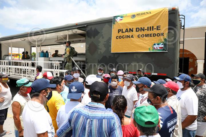 Como parte del plan DN-III el ejército instaló comedores comunitarios para apoyar a los pobladores de lo municipios de Yucatán afectados por "Cristóbal".