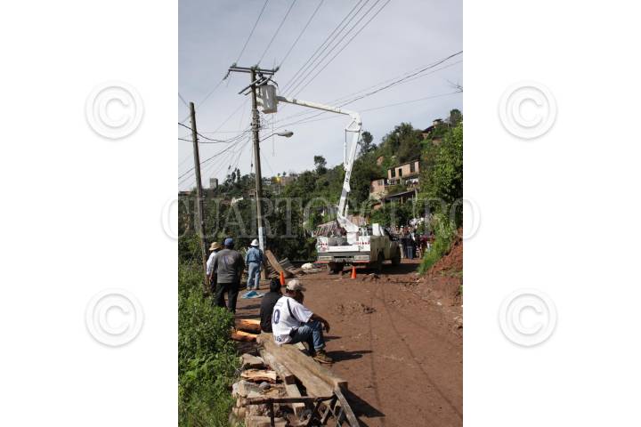 SANTA MARIA TLAHUITOLTELPEC, OAXACA, 30SEPTIEMBRE2010.- Trabajadores de la Comisión Federal de Electricidad, restablecen el suministro electrico en la comunidad de Santa María Tlahuitoltepec. FOTO: ADRIANA ALVAREZ/CUARTOSCURO.COM