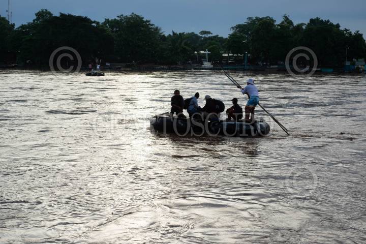 CIUDAD HIDALGO, CHIAPAS, 22SEPTIEMBRE2024.- Migrantes provenientes de diferentes países de Centroamérica y Sudamérica mayormente venezonalos cruzar la frontera de Mexico con guatemala por el río Suchiate en balsas construidas con cámaras de llantas de camiones y tablas para continuar su camino rumbo a Estados Unidos. FOTO: ISABEL MATEOS /CUARTOSCURO.COM