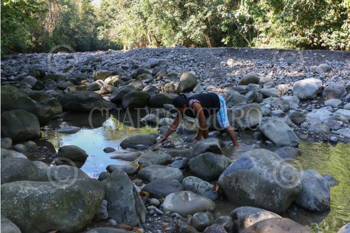 TEAPA, TABASCO, 05MARZOO2017.- La pobreza extrema obliga a doña Maria Felipa Alvarado Alvarado de 36 años de edad a recolectar piedras del río Puyacatengo para venderla ya sea por pieza en diez pesos; tamaño en 40 pesos; cubo de 20 litros o volteo en 1300 pesos. Dicha actividad la viene realizando desde hace tres años en las inmediaciones de la villa Vicente Guerrero Terminal. Otras de las causas que origino esta labor se debe a que su pequeña hija Maria Fernanda Martinez Alvarado de dos años requiere medicamentos debido a que tiene ataques epilépticos, secuelas que le dejó el Chikungunya. FOTO: MARCO POLO GUZMÁN HERNÁNDEZ /CUARTOSCURO.COM