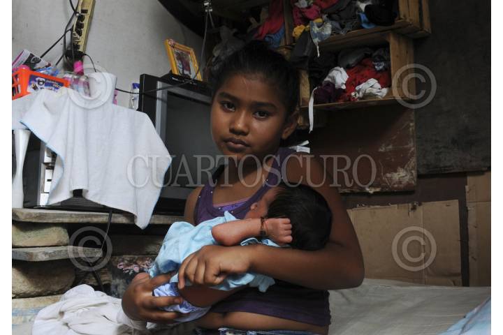 COCHOAPA EL GRANDE, GUERRERO, 26DICIEMBRE2014.- Despunta la mañana y los niños y jóvenes del municipio de Cochoapa el Grande, considerado el más pobre del país de acuerdo con cifras del 2006 de la Conapo, comienzan a salir de sus casas de adobe y tablas a las calles de lodo, unos cargan machetes y morrales, otros más ayudan en el hogar, juegan futbol o a las canicas. Todos visten ropas gastadas y manchadas de lodo. Algunos admiten que podrían apoyar en el campo pero prefieren quedarse en el pueblo, además de que la actividad agrícola es escasa pues afirman que la tierra de Cochoapa no sirve para sembrar, por lo que la mayoría de los adultos sale hacia Sinaloa y Colima para trabajar en la pizca de tomate, actividad en la que ganan de 100 a 120 pesos diarios. En la imagen, una niña se asoma al dintel de su casa. FOTO: DAVID POLO /CUARTOSCURO.COM