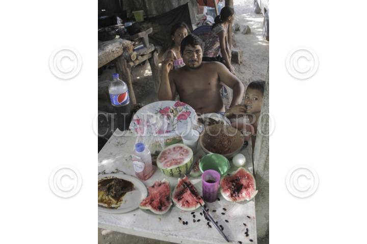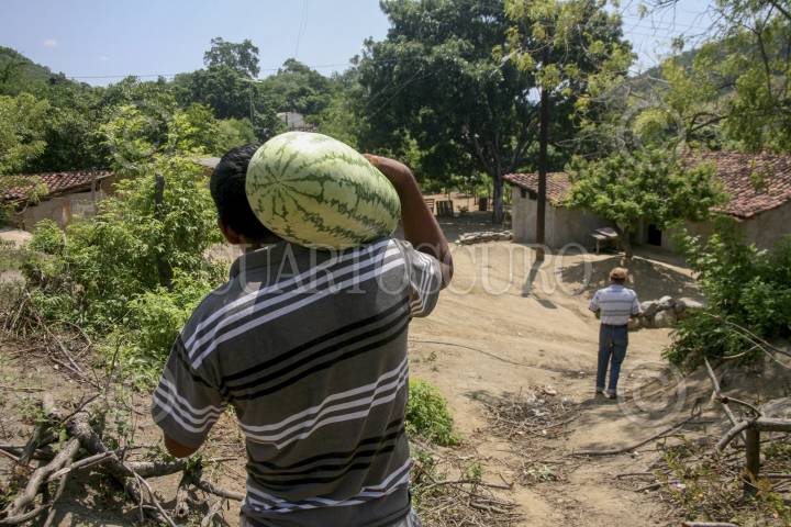 ACAPULCO, GUERRERO, 09AGOSTO2015.- Los campesinos deben enfrentar condiciones de abandono, pobreza, falta de oportunidades por parte de los tres niveles de gobierno, carencia de servicios de salud. Salvador Adame del Carmen de 54 años, es campesino originario de Dos Arroyos, y trabaja de lunes a domingo para mantener a su familia, integrada por 14 nietos y su esposa doña Norma Castañeda. Conoce que su fuerza de trabajo es lo único que sacará adelante a sus nietos, así que debe enfrentar las carencias del campo en Guerrero, y cosechar por sí mismo, sandía, frijol y maíz. Vende aproximadamente una sandía desde los 10, 15, 20 y hasta 60 pesos por pieza. “Nadie nos ha apoyado nunca, el gobierno no nos ayuda, siempre hemos sido nosotros, lo que podemos hacemos nada más”, señaló. FOTO: BERNANDINO HERNÁNDEZ /CUARTOSCURO.COM