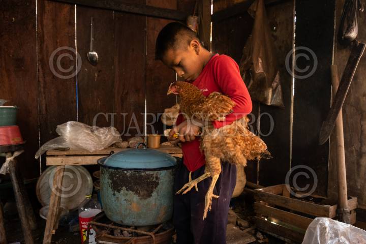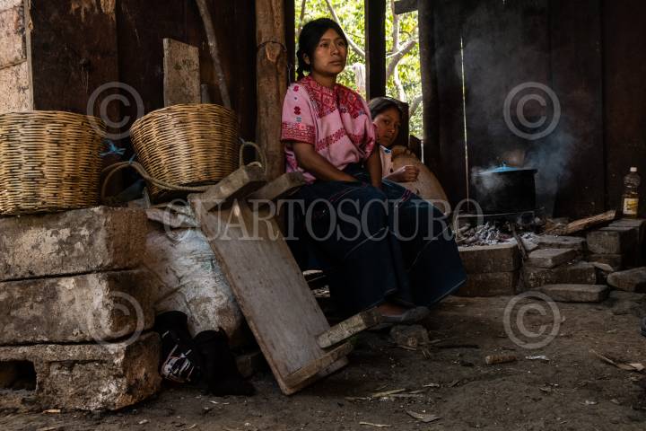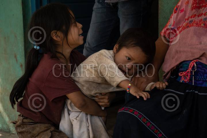 Madre y sobrino de Artemio, hombre herido en la comunidad de Tabak por una bala proveniente del territorio de Santa Martha, Chenalhó.