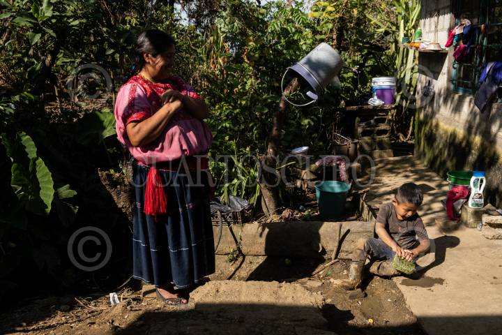 Andrea tiene ocho hijos y perdió a su esposo, quien fue asesinado durante el conflicto entre Aldama y Chenalhó, mientras limpiaba su parcela.