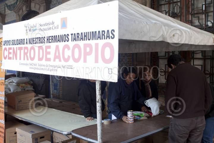 MÉXICO, D.F., 17ENERO2012.- Poca ayuda se ha hecho presente en el centro de acopio en solidaridad a los Tarahumaras instalado en día de ayer en el Zócalo. Los indígenas Tarahumaras que viven en la sierra de Chihuahua viven una intensa hambruna tras una alargada sequía, desestimada el día de ayer por un funcionario federal. FOTO: MOISÉS PABLO/CUARTOSCURO.COM