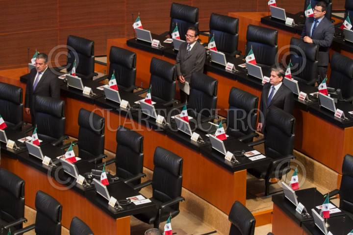 CIUDAD DE MÉXICO, 02FEBRERO2017.- Durante el canto del himno nacional con el que se dieron inició oficialmente el periodo ordinario en la Cámara de Senadores se observó nula presencia de los senadores. FOTO: MOISÉS PABLO /CUARTOSCURO.COM