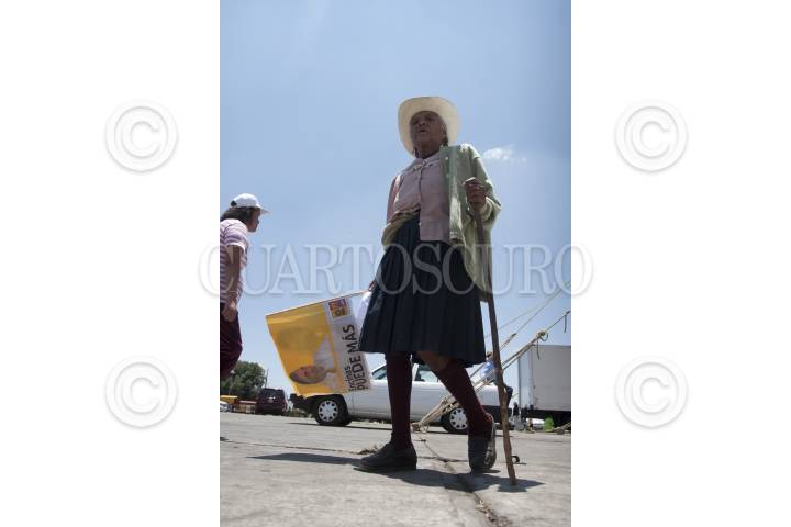 JILOTEPEC, ESTADO DE MÉXICO., 15JUNIO2011.- Alejandro Encinas Rodríguez, candidato de la coalición “Unidos Podemos Más” durante su mitin en el tianguis municipal donde realizó la firma del pacto con productores rurales. FOTO: GUILLERMO PEREA/CUARTOSCURO.COM