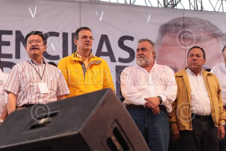 VALLE DE CHALCO, ESTADO DE MÉXICO, 25JUNIO2011.- El senador Carlos Navarrete, Marcelo Ebrard, Jesús Zambrano, acompañaron a Alejandro Encinas, candidato del PRD al gobierno del Estado de México, a su pre-cierre de campaña en Valle de Chalco. FOTO: CUARTOSCURO.COM