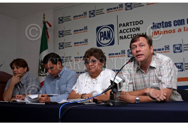 MÉRIDA, YUCATAN, 14JUNIO2010.- Hugo Laviada Peniche el sustituto de la ex candidata a la alcaldia de Mérida Beatriz Zavala Peniche en el senado de la República, se reunió con la directiva estatal del Partido Acción Nacional (PAN), para hacer público las anomalías en las pasadas elecciones del 16 de mayo, así como las fuentes de interés y las consecuencias que podría ocasionar la unión de la policía municipal de Mérida con la policía Estatal y quedar la seguridad del Estado en manos del director de la Secretaria de Seguridad Pública, Luis Saidén Ojeda. FOTO: FRANCISCO BALDERAS/CUARTOSCURO.COM