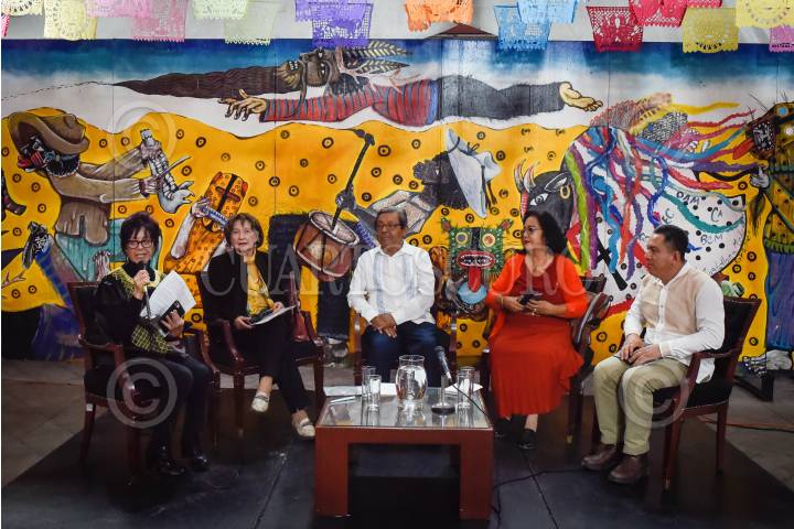 CIUDAD DE MÉXICO, 09NOVIEMBRE2024.- La poeta tsotsil Enriqueta Lunez, el poeta Mardonio Carballo y Rodolfo González Martínez, versado y músico, durante la presentación del libro “Chén Che Re”, escritó en lengua española, inglés y nahua. La presentación se realizó en La Casa Universitaria del Libro de la Universidad Nacional Autónoma de México (UNAM) en compañía de amigos, público en general e invitados especiales. FOTO: GALO CAÑAS/CUARTOSCURO.COM