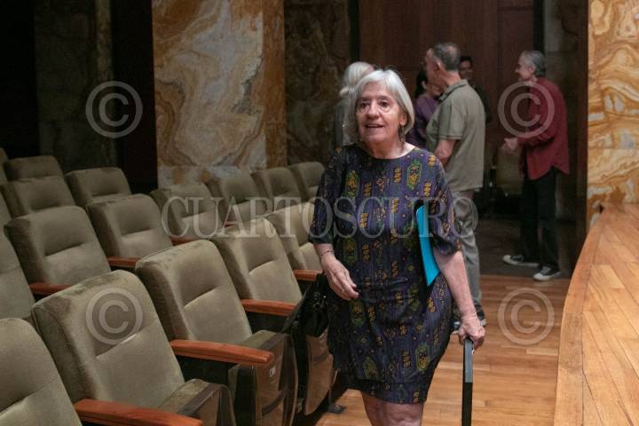 CIUDAD DE MÉXICO, 12MAYO2024.- La poeta María Baranda al finalizar la ceremonia en donde se reconoció la obra de Beatriz Pérez Pereda, ganadora del Premio Iberoamericano Bellas Artes de Poseía Carlos Pellicer. FOTO: MOISÉS PABLO/CUARTOSCURO.COM