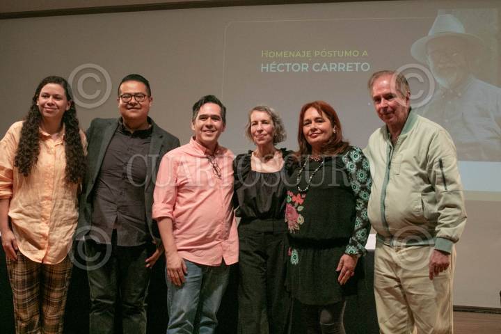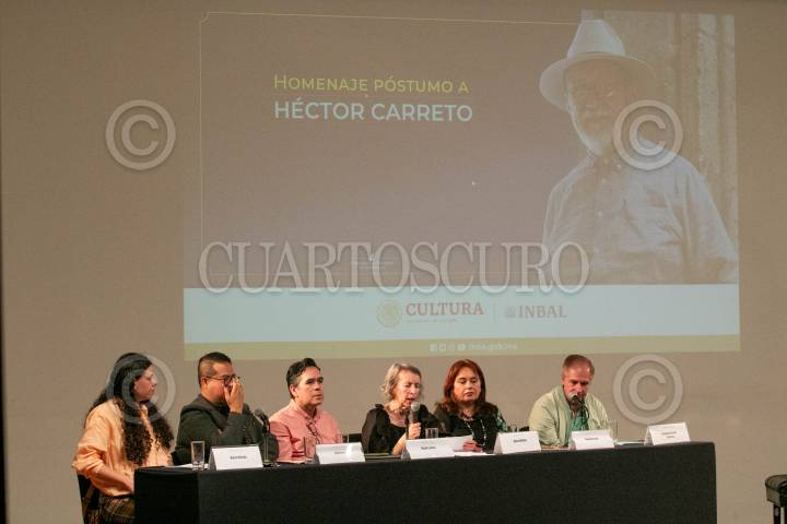 CIUDAD DE MÉXICO, 04AGOSTO2024.- Karen Villeda, Iván Cruz, Mijaíl Lamas, Dana Gelinas, Carmen Nozal, y Armando Alanís Canales, participaron en el homenaje póstumo del poeta Héctor Carreto, fallecido el pasado 29 de enero. Héctor Carreto falleció a los 70 años de edad dejando atrás más de una veintena de poemarios y antologías, entre los cuales destacan: Coliseo (2002), que le mereció el Premio Bellas Artes de Poesía Aguascalientes; La espada de san Jorge (1982), Premio Nacional de Poesía Carlos Pellicer para Obra Publicada; y Habitante de los parques públicos (1991), Premio de Poesía Luis Cernuda. El encuentro para recordarlo se realizó en la Sala Manuel M. Ponce del Palacio de Bellas Artes. FOTO: MOISÉS PABLO/CUARTOSCURO.COM