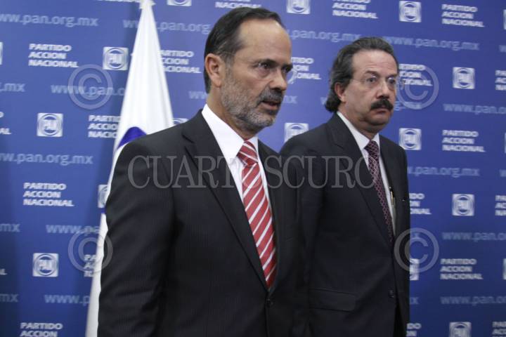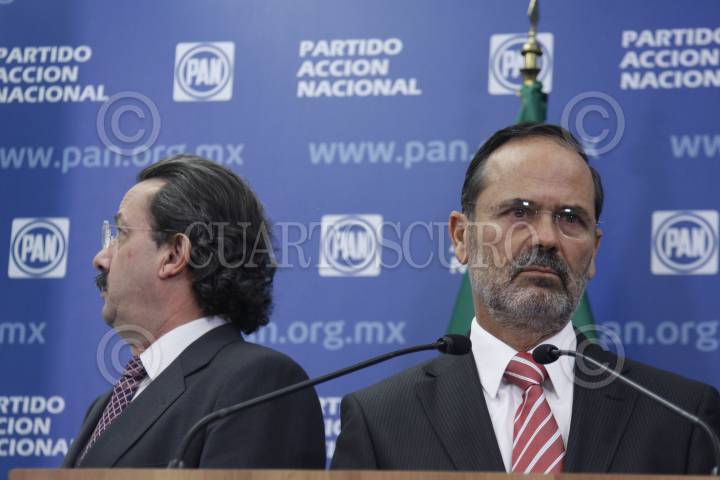 MÉXICO, D.F., 27ABRIL2011.- Gustavo Madero, presidente nacional del Partido Acción Nacional (PAN) y Juan Molinar Horcasitas, Secretario de Acción de gobierno del CEN del PAN; anunciaron que no se lograron los acuerdos para que el PRD participe en la alianza a la gubernatura de Nayarit, por lo que postulan a Martha García Gómez como candidata del PAN a la gubernatura de ese estado. FOTO: IVAN STEPHENS/CUARTOSCURO.COM