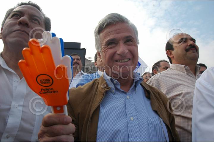 MEXICO, D.F. 04NOVIEMBRE2005.- Felipe Calderón Hinojosa, saluda a sus simpatizantes previo a la ceremonia de toma de protesta como candidato del PAN a la presidencia de la República. FOTO: Iván Stephens/CUARTOSCURO.COM