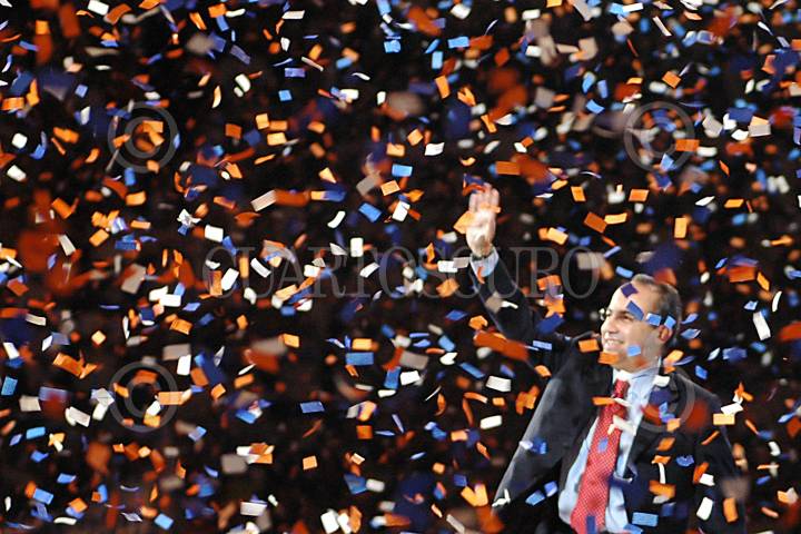 MEXICO, D.F. 04DICIEMBRE2005.- Felipe Calderón Hinojosa, saluda a la gente durante la ceremonia de protesta como candidato del PAN a la presidencia de República. FOTO: Iván Stephens/CUARTOSCURO.COM