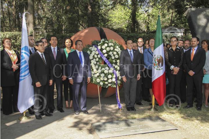 MÉXICO, D.F., 19MARZO2013.- Juan Manuel Oliva y Ernesto Cordero Arrollo, candidato a Secretario General y Presidente del Partido Acción Nacional, durante la ofrenda floral en homenaje a Gómez Morin, como parte de inicio de campaña de Ernesto Cordero a la dirigencia blanquiazul. FOTO: CUARTOSCURO.COM