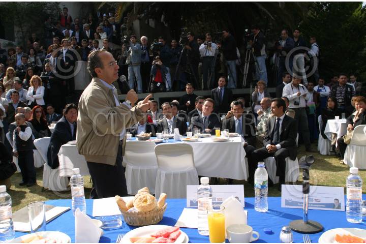 TLALNEPANTLA, ESTADO DE MEXICO 14FEBRERO2006.- Felipe Calderón Hinojosa, candidato del PAN a la presidencia de la República dirige su mensaje a los vecinos de las Colonias, durante su desayuno. FOTO: Nelly Salas/CUARTOSCURO.COM