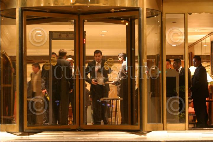 MÉXICO D.F., 13ABRIL2010.- Elementos del estado mayor presidencial y del servicio secreto, revisan con arcos de seguridad y perros a personas que accedan al hotel donde se hospeda Michelle Obama, esposa del mandatario norteamericano Barack Obama. FOTO: SAÚL LÓPEZ/CUARTOSCURO.COM
