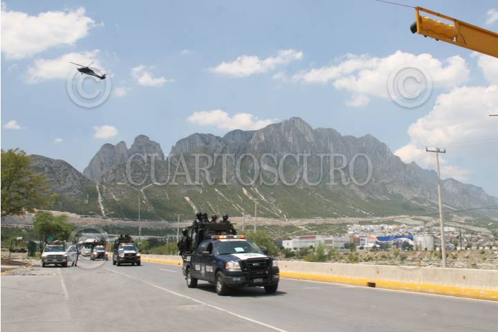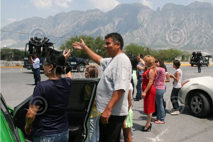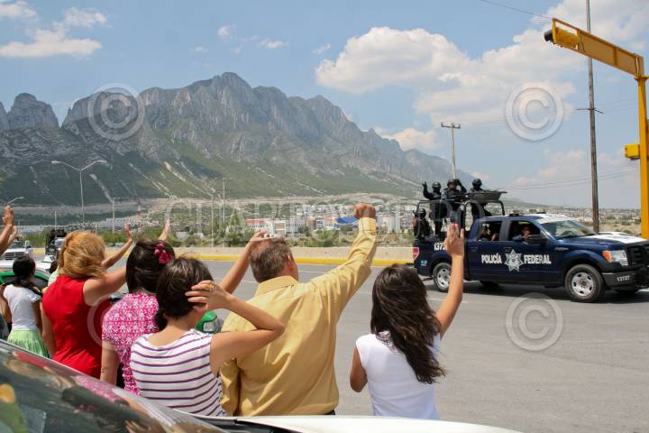 SANTA CATARINA, NUEVO LEÓN, 28AGOSTO2011.- Familias de Santa Catarina, saludan a los 1500 de policías federales que llegaron a la ciudad de Monterrey y área metropolitana para restablecer el orden publico. FOTO: SAÚL LÓPEZ/CUARTOSCURO.COM
