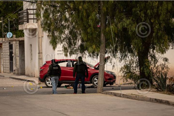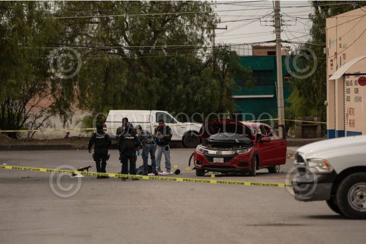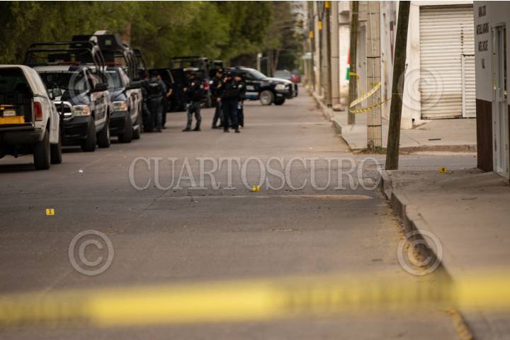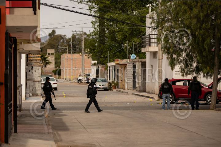 JEREZ, ZACATECAS, 13ABRIL2024.- Cientos de casquillos percutidos se pudieron observar sobre la calle El Molino y Galeana, tras un enfrentamiento entre civiles armados y policías estatales que dejó como saldo tres elementos policiacos heridos, tres hombres sin vida y dos más detenidos. Fue alrededor de las 3 horas cuando las corporaciones policiacas realizaban un recorrido de vigilancia por el fraccionamiento El Molino, cuando sujetos armados comenzaron a disparar y los efectivos comenzaron a repeler la agresión; después de la refriega que se mantuvo por varios minutos, en el lugar tambien fue asegurado un vehículo Honda HRV, tres armas de fuego largas, dos armas cortas, un lanzagranadas, cartuchos y equipo táctico, informó la Vocería de la Mesa Estatal de Paz. FOTO: GENARO NATERA /CUARTOSCURO.COM