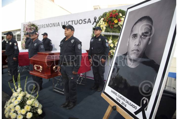 CUERNAVACA, MORELOS, 31AGOSTO2016.- Esta mañana se llevó a cabo un homenaje de cuerpo presente de los dos policías municipales que el lunes fueron asesinados en el municipio de Zacatepec. El acto se realizó en el Torre Morelos, cuartel general de la Comisión Estatal de Seguridad Publica, estuvieron presentes las familias de los efectivos emboscados, además de Matías Quiroz Medina, secretario de gobierno, y Alberto Capella Ibarra, comisionado de seguridad pública. FOTO: MARGARITO PÉREZ RETANA /CUARTOSCURO.COM