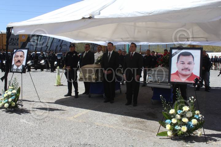 TLAQUEPAQUE, JALISCO. 26FEBRERO2016.- Esta mañana en las instalaciones de la corporación de Seguridad Ciudadana de Tlaquepaque, se llevo a cabo un homenaje de cuerpo presente a los oficiales caídos, Francisco Javier Alejo Rodríguez Director Operativo de la corporación y sus dos escoltas, Daniel Río Chávez y Jesús Hernández Centeno, esto tras ser emboscados por hombres armados abordo de una camioneta el pasado miércoles. FOTO : FERNANDO CARRANZA GARCIA / CUARTOSCURO.COM