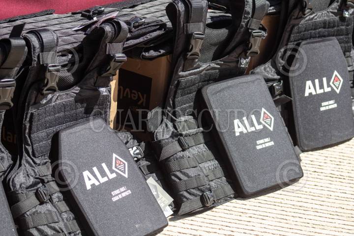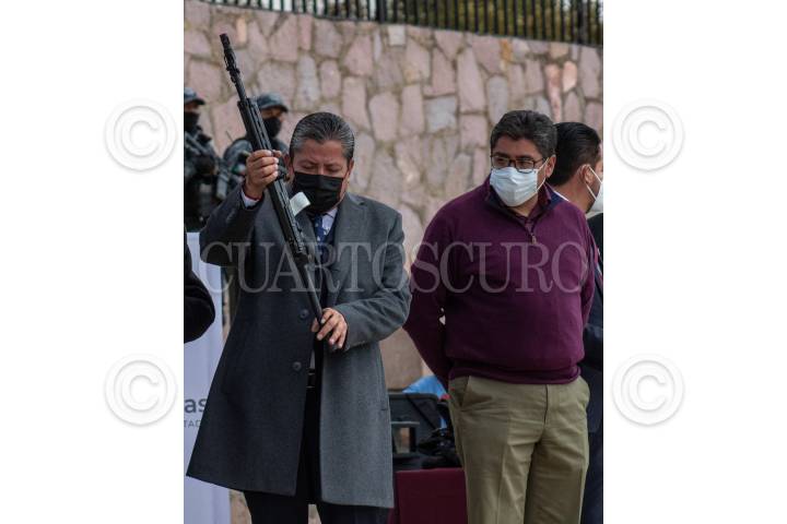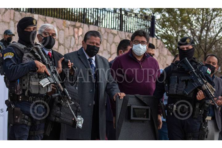 David Monreal, gobernador de Zacatecas, y Saúl Monreal, presidente municipal de Fresnillo, encabezaron la entrega de equipo táctico a corporaciones policiales de Fresnillo, Jerez, Ojocaliente, Pánuco y Vetagrande.