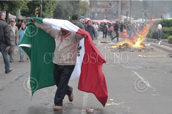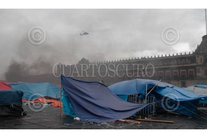 MÉXICO D.F., 13SEPTIEMBRE2013.- Elementos de la Policía Federal, desalojaron a los integrantes del magisterio pertenecientes a la Coordinadora Nacional de Trabajadores del Estado, que mantenían un plantón en la plancha del Zócalo Capitalino al rededor de 30 días en protesta por la Reforma Educativa. FOTO: JUAN PABLO ZAMORA /CUARTOSCURO.COM