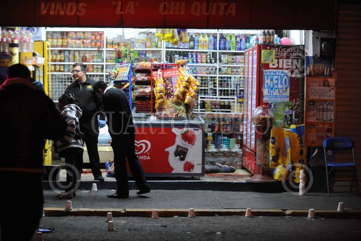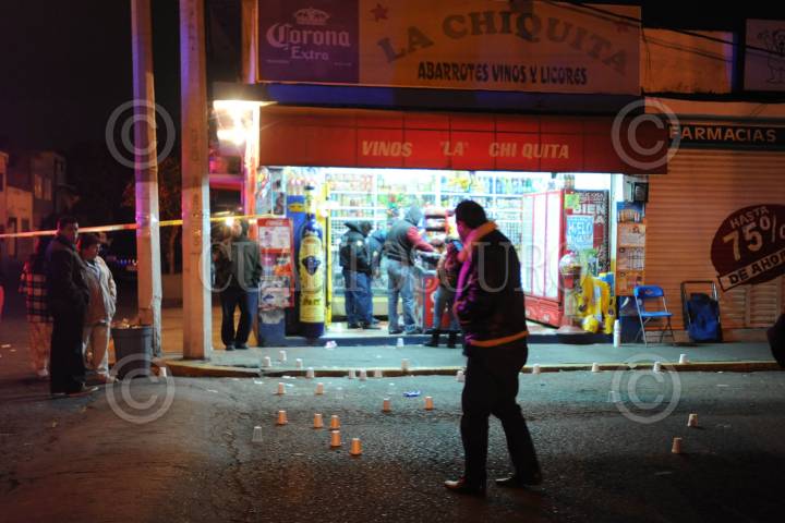 ECATEPEC, ESTADO DE MÉXICO; 18ENERO2014.- Una mujer, fue asesinada de varios disparos de arma de fuego al interior de una vinatería, en la calle Ernesto Pugibet de la colonia San Miguel Xaloxtoc Ecatepec. En el lugar, fueron ubicados al menos 50 casquillos de diferentes calibres. FOTO: LUIS CARBAYO /CUARTOSCURO.COM