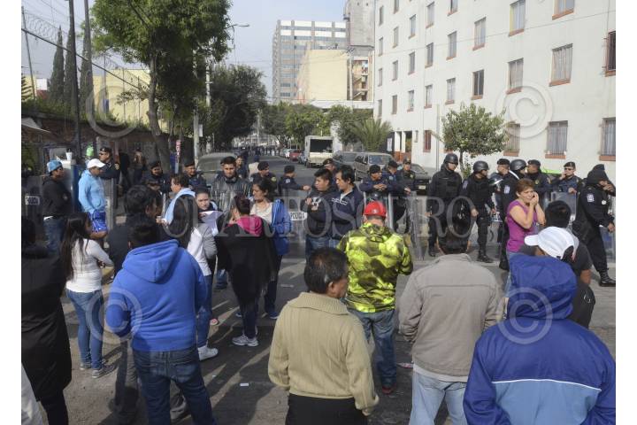 CIUDAD DE MÉXICO, 20FEBRERO2016.- Policías antimotines cercaron las inmediaciones del mercado de la pulga ubicado en la calle de Fray Servando y San Antonio Abad ya que sera demolido, locatarios inconformes querían entrar al predio pero les fue impedido el paso. FOTO: ARMANDO MONROY /CUARTOSCURO.COM