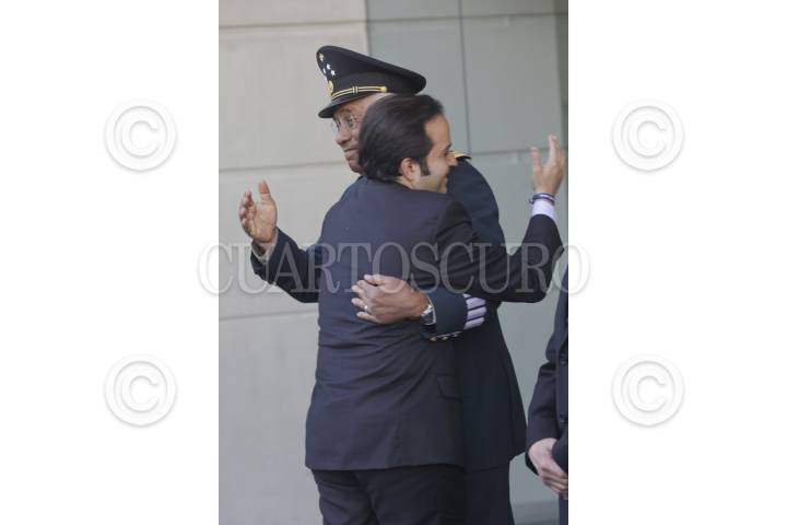MÉXICO D.F., 09MARZO2012.- El secretario de la Defensa, Guillermo Galván, saluda al secretario de Gobernación, Alejandro Poiré, durante la inaguración del edificio de la Policia Científica por el jefe del ejecutivo, Felipe Calderón Hinojosa. FOTO: JUAN PABLO ZAMORA /CUARTOSCURO.COM