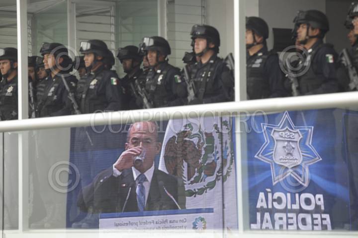 MÉXICO D.F., 09MARZO2012.- Fue inagurado el edificio de la Policia Científica de la Policía Federal, por el jefe del ejecutivo, Felipe Calderón Hinojosa en avenida Constituyentes. Al acto acudieron los gobernadores de Tamaulipas, Hidalgo, y Tlaxcala. Así como la Procuradora General, Marisela Morales Ibáñez. FOTO: JUAN PABLO ZAMORA /CUARTOSCURO.COM