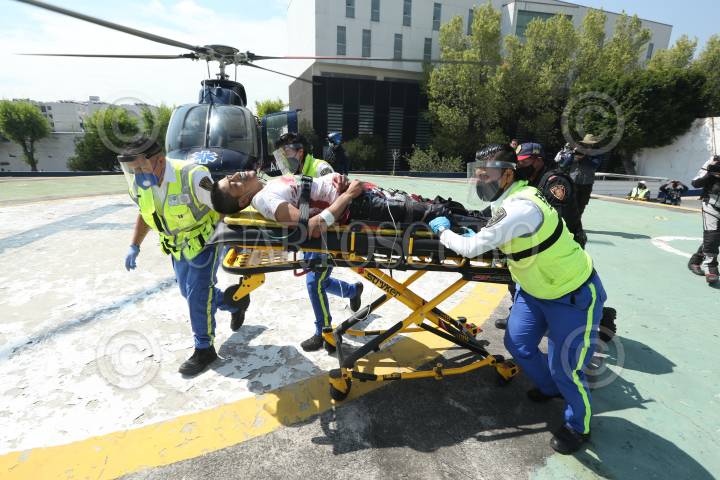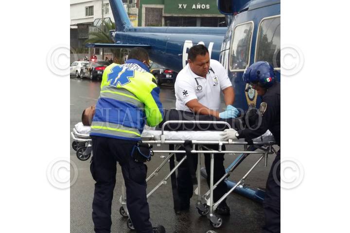 Trasladan en helicóptero Cóndor a policía baleado en Iztapalapa a la base de Tlaxcoaque, para que de ahí fuera llevado en ambulancia a recibier atención médica al hospital Álvaro Obregón.