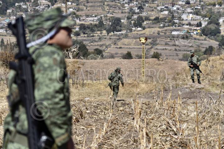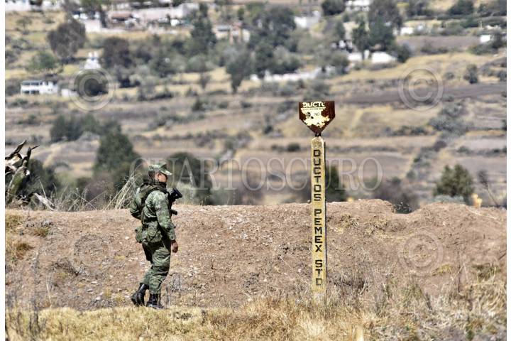 ACAMBAY, ESTADO DE MÉXICO, 22ENERO2019.- Los ductos de PEMEX que pasan por este municipio son vigilados por elementos de la Policía Militar y policías federales, en días pasados fueron detectadas dos tomas clandestinas. FOTO: ARTEMIO GUERRA BAZ/CUARTOSCURO.COM