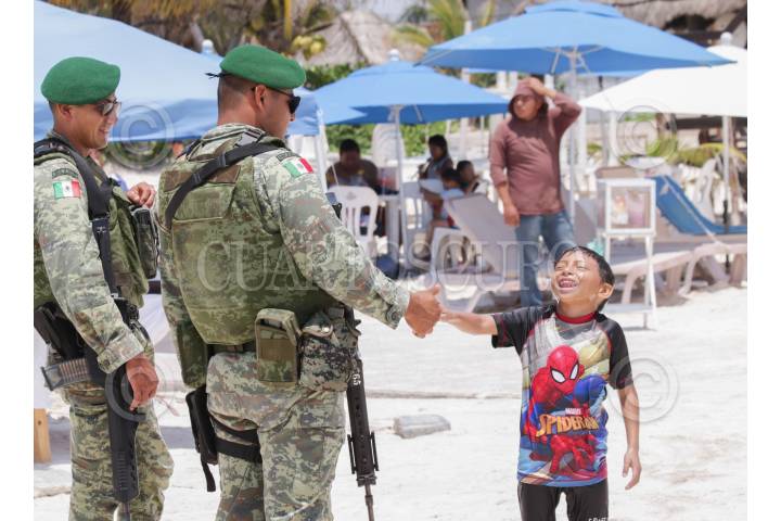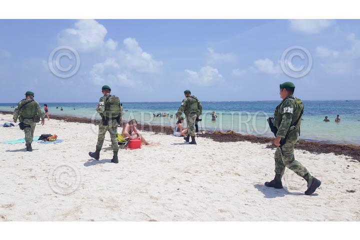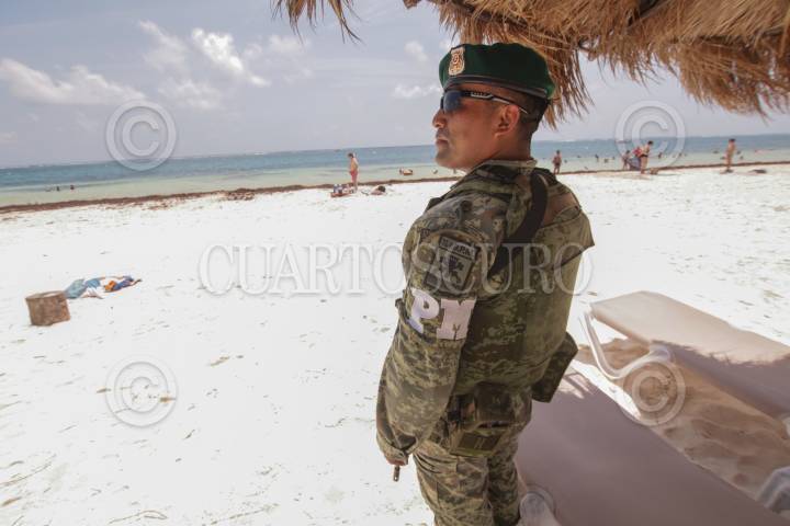PUERTO MORELOS, QUINTANA ROO, 16ABRIL2019.- Elementos de policía militar de la entidad realizan recorridos en los alrededores de las playas mientras cientos de turistas disfrutan las vacaciones de semana santa. FOTO: ELIZABETH RUIZ /CUARTOSCURO.COM