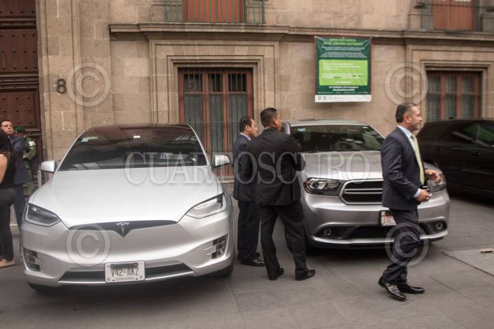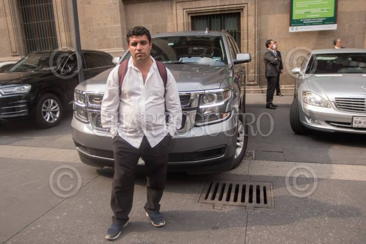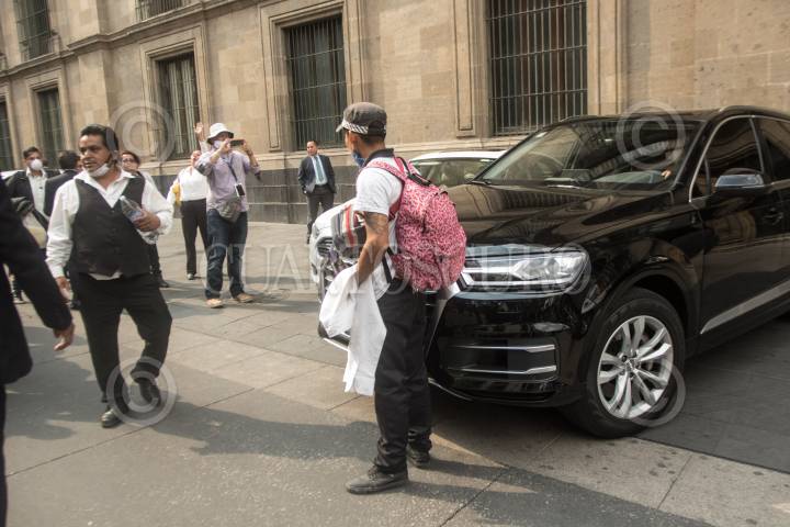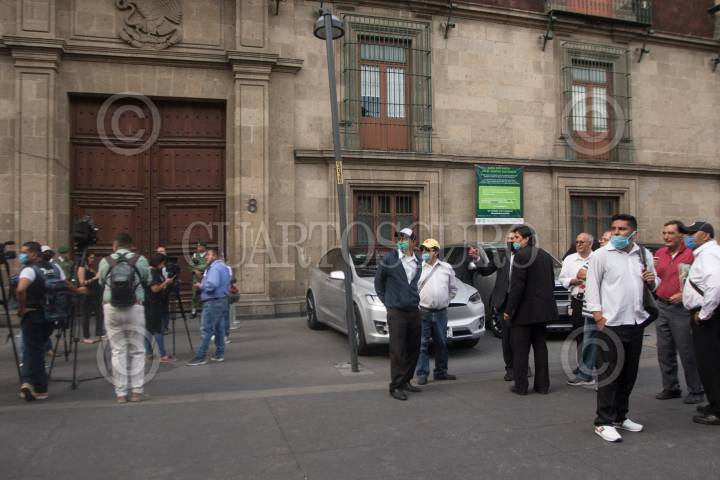 Medios de comunicación y meseros en las afueras del Palacio Nacional