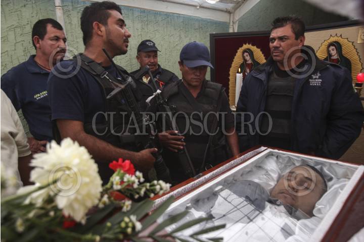 BUENAVISTA TOMATLAN, MICHOACÁN, 18DICIEMBRE2014.- En la comunidad de la Ruana, la tarde de ayer se realizaron los servicios fúnebres de Manolo Mora hijo del líder y fundador de los grupos de Autodefensas, Hipólito Mora, quien fue abatido el pasado martes 16 durante un enfrentamiento con el grupo autodenominado H3, que es encabezado por Luis Antonio Torres, alias ´El Americano'. FOTO: ALAN ORTEGA /CUARTOSCURO.COM