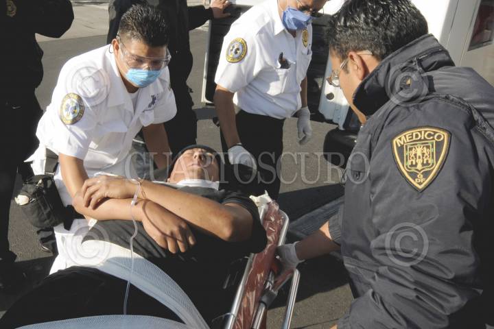 MÉXICO, D.F., 07NOVIEMBRE2012.- Dos elementos policíacos, resultaron con lesiones por arma de fuego mientras realizaban practicas de protección de personas al interior del Sector Fauno, ubicado, en Av Periférico y Canal de Chalco en Tláhuac. Al parecer no se percataron que practicaban con balas reales lo que ocasiono que se lesionaran entre los practicantes. Por este motivo, fueron trasladados en Helicóptero del grupo Cóndores al Hospital Moscell. FOTO: LUIS CARBAYO /CUARTOSCURO.COM