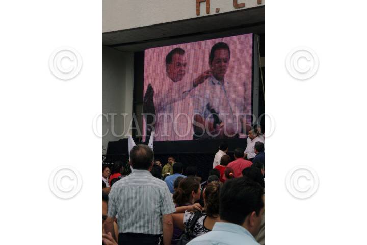 VILLAHERMOSA, TABASCO, 31DICIEMBRE2006.- En una pantalla puesta a las afueras de la H. Camara de Diputados, tabasqueños fueron testigos de la toma de protesta de Andres "El Quimico" Granier Melo como Gobernador Constitucional para el periodo 2007-2012. FOTO: MARCO POLO GUZMÁN HERNÁNDEZ/CUARTOSCURO.COM