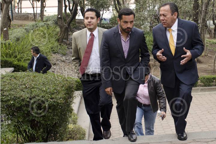 MÉXICO, D.F., 08MARZO2013.- Victor Hugo Romo, Jefe delegacional en Miguel Hidalgo y Jesús Zambrano, presidente del patido de la Revolución Democrática (PRD), a su llegada a una entrega de premios del concurso de fotografía "Ellas, a Través de la Lente". FOTO: MISAEL VALTIERRA / CUARTOSCURO.COM